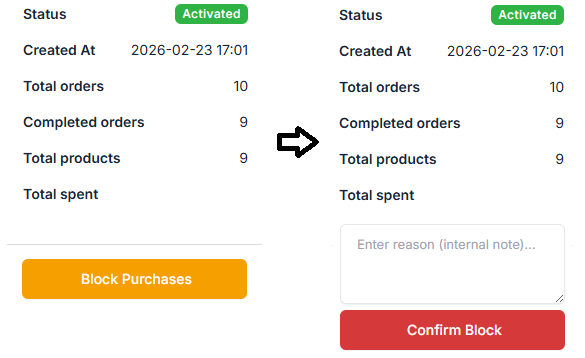 Block a specific customer from placing orders without freezing their account. The customer can still log in and browse - only checkout is restricted.